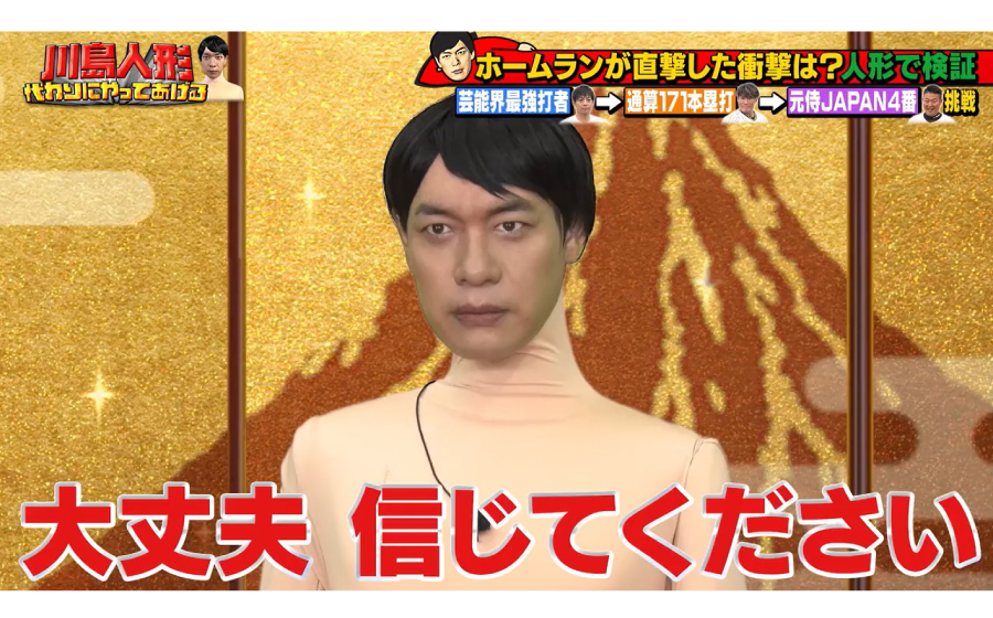 MCの川島明さんそっくりの“川島人形”となったフレキシブルマネキン・サンドールが、