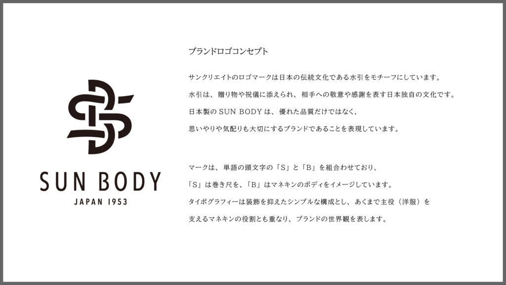 マークは、単語の頭文字の「S」と「B」を組合わせており、「S」は巻き尺を、「B」はマネキンのボディをイメージしています。